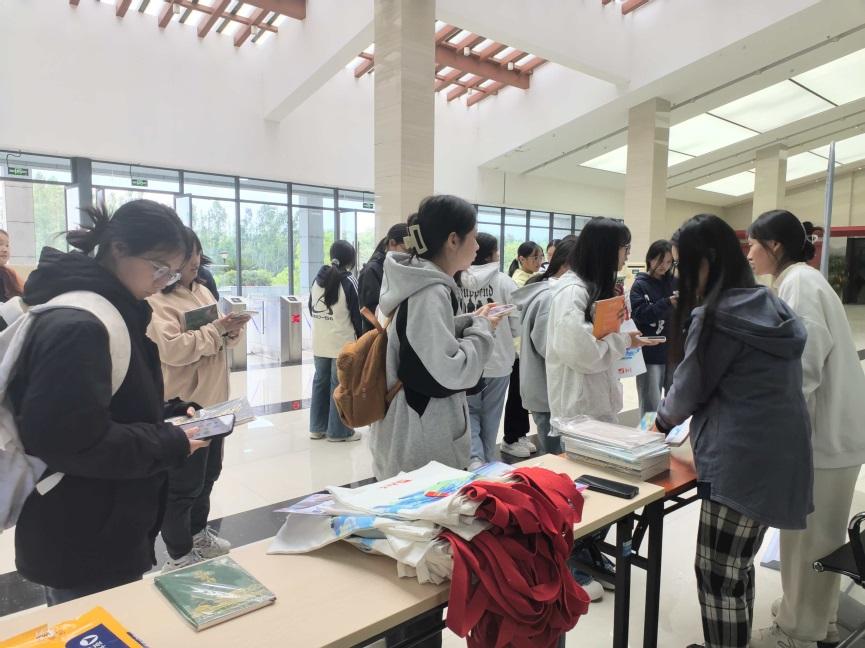 与此同时,摆展宣传在图书馆大厅同步铺开。图文并茂的展板,将移动图书馆和汇雅电子书的特色功能直观呈现。现场“扫码有礼”活动吸引了进出图书馆的学生们踊跃了解下载APP,领取精美小礼品;大一新生还参与了“新生入馆知识竞答”活动,答题的人络绎不绝,让大家在寓教于乐中熟悉图书馆的各项服务;工作人员热情发放宣传册和小礼品,耐心答疑解惑,现场氛围热烈。